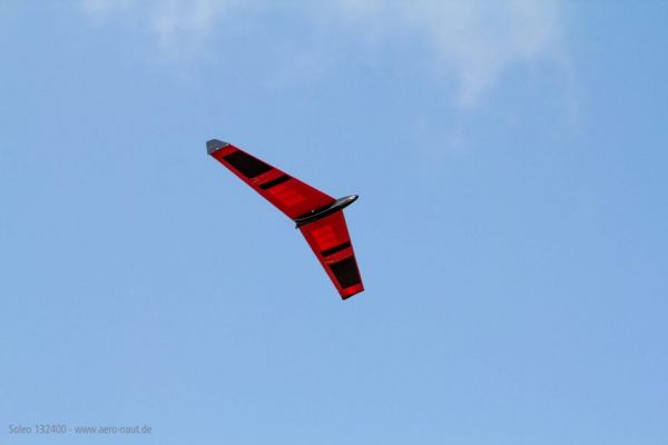 Ganz neu in Auslieferung ist der Soleo, ein Bausatz eines Nurflügel Modells. In der bekannten aero-naut Bauweise wird das Modell aus Balsaholz aufgebaut. Der Rumpf ist aus GfK gefertigt und weiß eingefärbt.